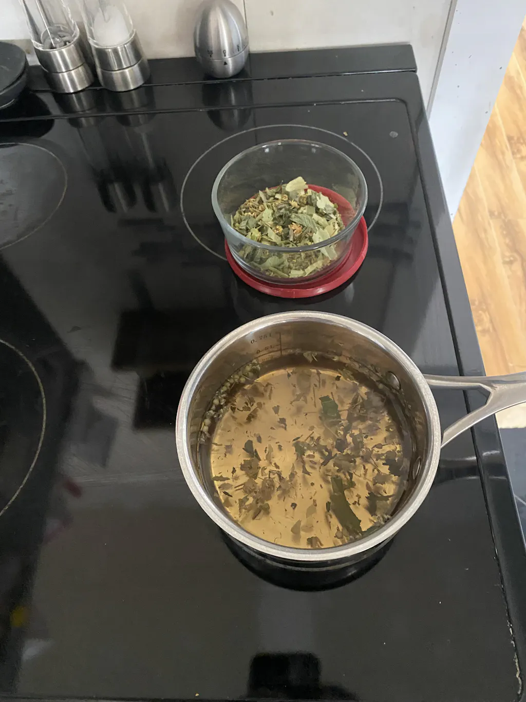 Faire infuser 1 c.à thé de tisane dans une tasse d'eau bouillante. Laissez la tasse couverte pendant 5 minutes. Passer par un tamis et servir!